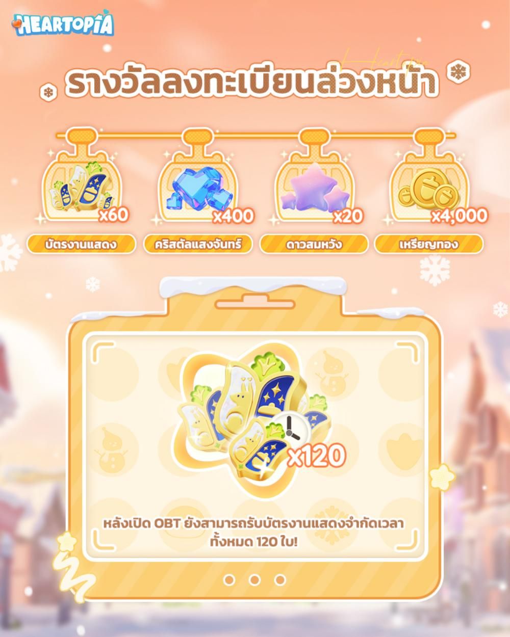 • เวลาแจก: 8/1/2026 10:00 (UTC+7) หลัง Heartopia เปิดเซิร์ฟเวอร์