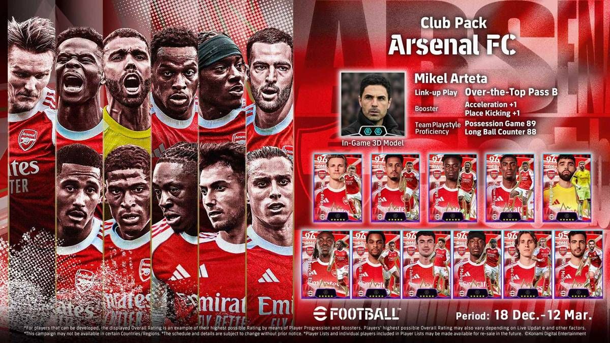 นอกจากนี้ การคัดเลือกออนไลน์สำหรับกิจกรรมสโมสร ‘eFootball™ Championship 2026 Arsenal FC’ ได้เริ่มต้นขึ้นแล้ว กิจกรรมนี้จะคัดเลือกตัวแทนของ Arsenal FC สำหรับการแข่งขันอีสปอร์ตชิงแชมป์โลกอย่างเป็นทางการ ‘eFootball™ Championship 2026’ ซึ่งในฤดูกาลที่แล้วมีผู้เข้าร่วมถึง 36.42 ล้านคน