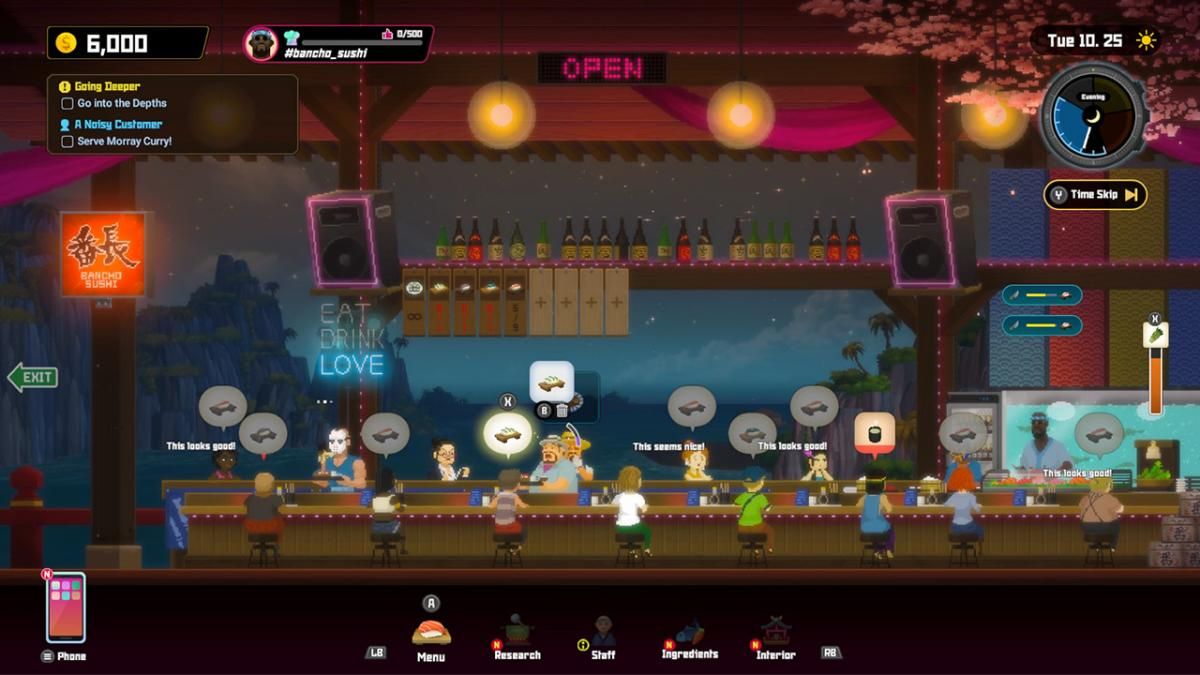 • ใช้วัตถุดิบที่รวบรวมมาและกำไรจากร้านซูชิในการอัปเกรดและสร้างอุปกรณ์ เพื่อเตรียมตัวเผชิญหน้ากับอันตรายที่ซุกซ่อน