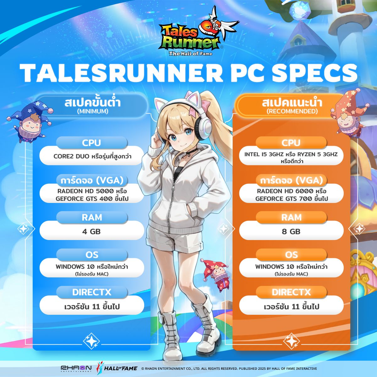 เรียกว่าเหล่ารันเนอร์ (นักวิ่ง) เตรียมตัววอร์มอัปร่างกายรอกันได้เลยเพราะเกมวิ่งในตำนานอย่าง Tales Runner : Dream Journey ที่กลับมาเปิดลู่วิ่งอีกครั้ง ได้ประกาศเปิดให้บริการช่วง CBT ในวันที่ 25 กุมภาพันธ์นี้ นอกเหนือจากนี้แล้วก่อนหน้านี้มีการประกาศคอลแลปส์เสียงพากย์ไทยกับเหล่า VTuber ซึ่งใครพากย์เป็นใครติดตามกันได้ในเพจหลักของเกมได้เลย และอย่าลืมเช็คสเปคคอมฯกันก่อนเริ่มเกมด้วยนะ