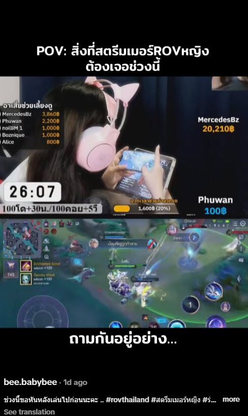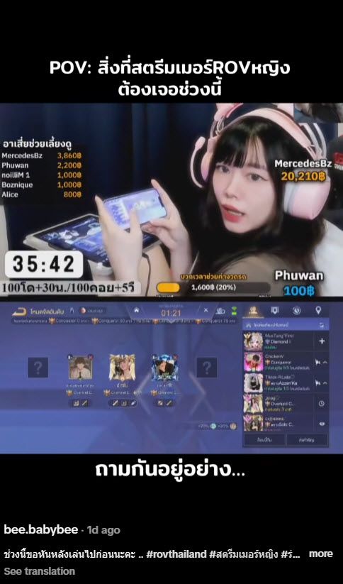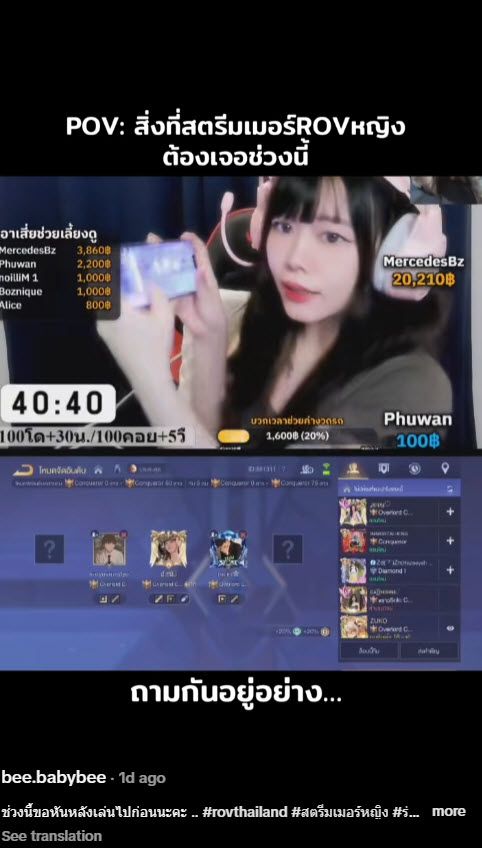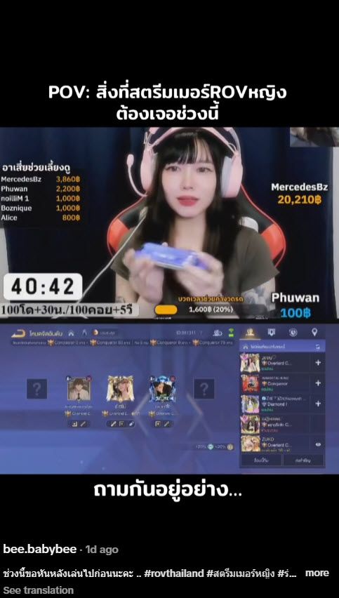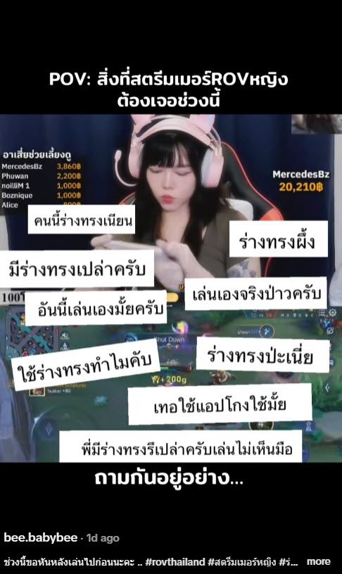 เรื่องมันมีอยู่ว่าทางช่อง "bee.babybee ผึ้งซี่ขี้โม้" ได้โพสต์วิดีโอบน TikTok แบบว่า สิ่งที่สตรีมเมอร์ RoV หญิง ต้องเจอในช่วงนี้ ซึ่งจะเป็นการโชว์เล่นเกม RoV ในแบบปกติที่จะหันหน้าให้กล้อง พร้อมกับเล่นเกมไปด้วย ซึ่งด้วยเหตุการณ์ในปัจจุบันที่เกี่ยวกับการใช้กลโกงในการเข้ามาช่วยเล่นของนักแข่ง TokyoGurl ที่กำลังกลายเป็นกระแสอยู่ในตอนนี้ ทำให้เกิดคอมเมนต์มากมาย เช่น "คนนี้ร่างทรงเนียน", "ร่างทรงผึ้ง", "มีร่างทรงเปล่าครับ", "เล่นเองจริงป่าวครับ", "เทอใช้แอปโกงใช่มั้ย", "พี่มีร่างทรงรึเปล่าครับเล่นไม่เห็นมือ" และอื่น ๆ
