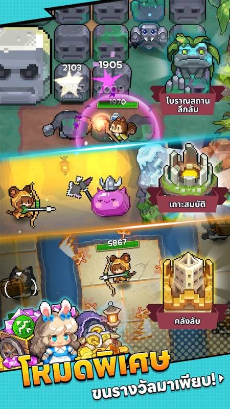 - Request Mode, Treasure Island, Mysterious Ruins, Secret Vault, Witch's Garden, Arena และอีกมากมาย