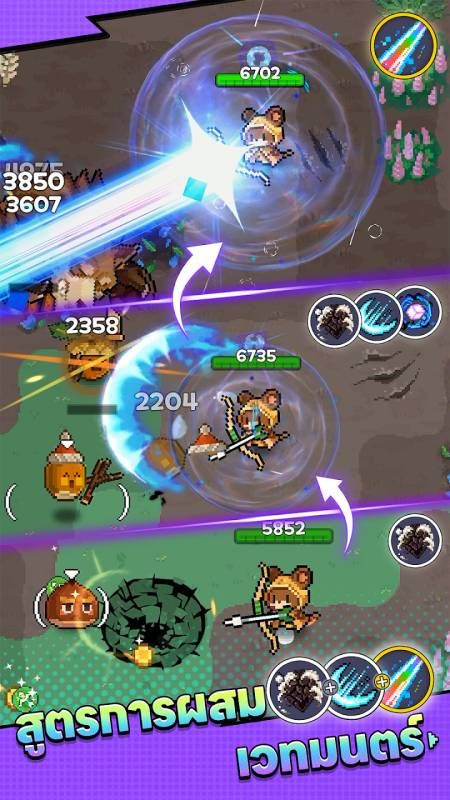 - เสริมความแข็งแกร่งให้กับอุปกรณ์ของคุณ และคิดค้นกลยุทธ์ใหม่ ๆ ด้วยการใช้คอมบิเนชันสกิลที่แตกต่างในแต่ละด่าน