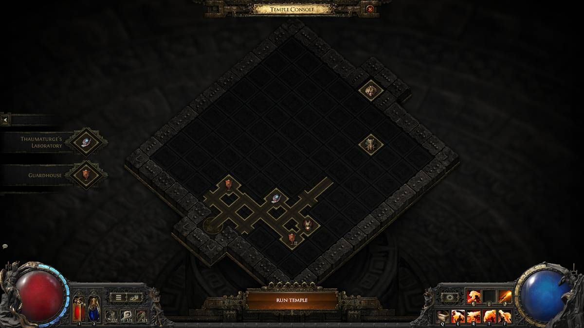 ตำแหน่งของแต่ละห้องมีความสำคัญต่อการได้รับผลตอบแทนสูงสุด ตัวอย่างเช่น ผู้เล่นจะสามารถวาง Commander เพื่อควบคุม Garrison of Troops ทำให้มอนสเตอร์แข็งแกร่งขึ้นและให้รางวัลมากขึ้น เมื่อลองเล่นวิหารนั้น จะมีบางห้องที่ไม่เสถียร ส่งผลให้คุณต้องเติมห้องเพิ่มอีกหกห้องทุกครั้ง และขยายขนาดของวิหารให้ใหญ่ขึ้น ค้นพบ Medallions ที่ปรับพฤติกรรมของห้อง โอกาส double-corruption และกลไก Vaal เชิงทดลองที่สามารถแทนที่แขนขาด้วยชิ้นส่วนจักรกล!