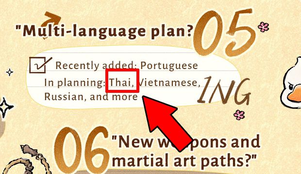 วันนี้ทางเกมสุดฮิตอย่าง Where Winds Meet ก็ได้เปิดเผยแผนของผู้พัฒนาในช่วงเดือนมกราคมนี้ ว่าอะไรอยู่ในขั้นตอนไหนบ้าง โดยแบ่งการอัปเดตออกเป็นหลายหัวข้อ บางส่วนก็ได้มีการอัปเดตไปก่อนหน้านี้แล้ว เช่น การอัปเดตให้ผู้เล่นสามารถสร้างตัวละครเพิ่มได้ในไอดีเดียวกัน, เพิ่มภาษาโปรตุเกสเข้าไปในเกม ฯลฯ บางส่วนกำลังทำ บางส่วนกำลังเริ่ม ไม่ว่าจะเป็นวิชาใหม่, เทศกาลใหม่ และแต่ที่แฟน ๆ ชาวไทยน่าจะตื่นเต้นกันที่สุดก็คือการพัฒนาเพิ่มภาษาไทยลงไปในเกม ตามที่ผู้เล่นหลายคนเรียกร้องกัน (เข้าใจว่าน่าจะเป็นส่วนซับไตเติ้ลภาษาไทยไม่ใช่ทั้งหมดของเกม) ก็อยู่ในแผนพัฒนาเรียบร้อยแล้ว พร้อมกับภาษาเวียดนาม, รัสเซีย และอื่น ๆ ใครรอคอยอยู่ก็อดใจรออีกนิด เอาโค้ดใหม่ล่าสุดด้านล่างไปกรอกก่อนเลย