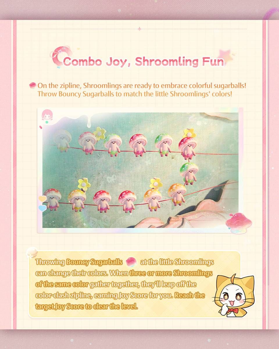 ออกเดินทางสู่การผจญภัยในโลกเทพนิยายแห่งภาพลวงตาอันแสนหวานที่ Sugarbloom Isle ที่ซึ่งการตกแต่งธีมขนมหวานถูกจัดเตรียมไว้อย่างพร้อมสรรพ และงานเลี้ยงใหญ่กำลังจะเริ่มต้น! คำเชิญเฉลิมฉลองจาก Roucoco ไอดอลที่เหล่า Shroomlings ต่างรักและชื่นชม ได้เปิดฉากการผจญภัยที่หวานละมุน แปลกใหม่ และราวกับความฝันขึ้นอย่างเงียบ ๆ แต่ไอดอลคนนี้สมบูรณ์แบบอย่างที่เห็นจริงหรือไม่?