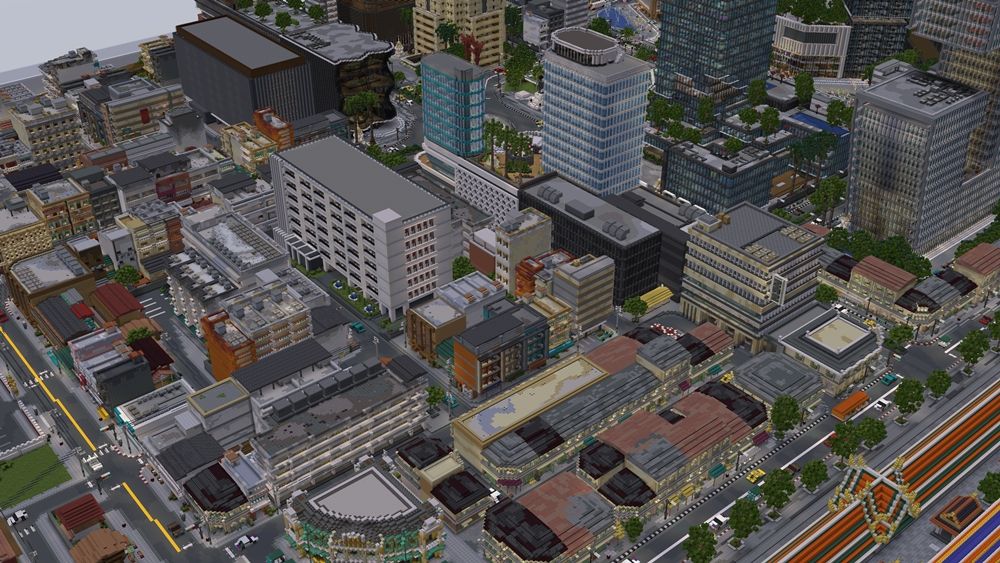 ทุกสิ่งก่อสร้างตั้งแต่ตึกสูง สำนักงาน ห้างสรรพสินค้า คอนโด และตึกแถว ล้วนได้แรงบันดาลใจจากสถานที่จริงในไทย ให้ความศิวิไลซ์แบบกรุงเทพฯ แต่ยังคงเอกลักษณ์ความเป็นไทยในทุกมุม - โซน Organic (โซนด้านหลังสุด)