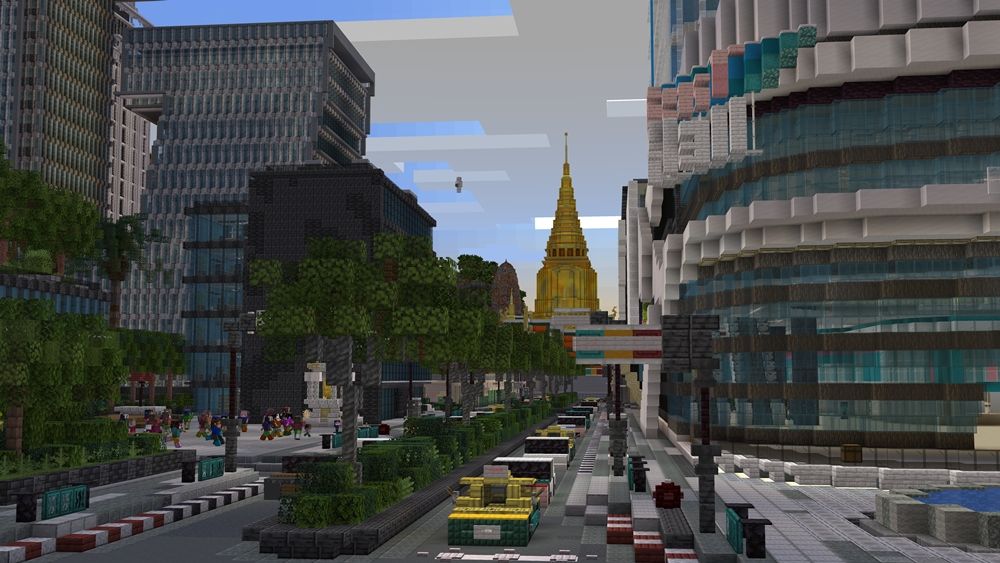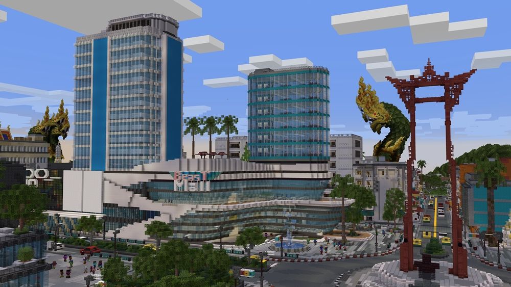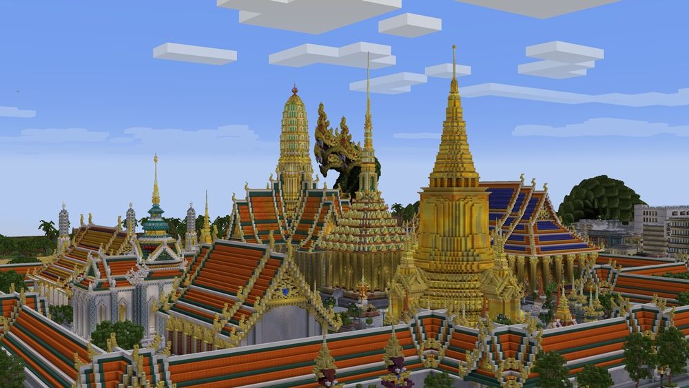 เน้นบรรยากาศการท่องเที่ยวและทำบุญ การตกแต่งภายในวิจิตร แม้อาจไม่เหมือนของจริงทั้งหมด เพราะต้องปรับเปลี่ยนลวดลายให้เหมาะกับสเกล Minecraft ซึ่งเป็นข้อจำกัดหนึ่ง (เน้นการตกแต่งภายในพระอุโบสถ) - โซนเมืองและตึกแถว