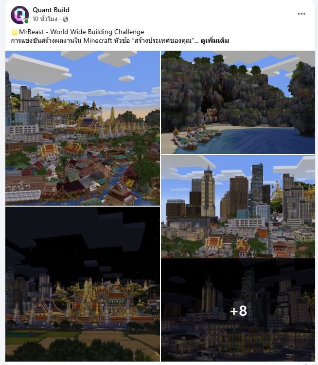 กำลังฮือฮาอยู่ในตอนนี้กับการเผยแพร่คลิปจาก MrBeast โดยเป็นคลิปการแข่งขัน Minecraft สร้างประเทศตัวเอง ซึ่งในคลิปนี้จะพาไปชมแผนที่ Minecraft ที่ถูกสร้างเป็นประเทศต่าง ๆ รวมทั้งหมด 9 ประเทศ อันได้แก่ อเมริกา, ฝรั่งเศส, แม็กซิโก, อินโดเนเซีย, บราซิล, เกาหลีใต้, ฟิลิปปินส์, เยอรมันนีและไทย ซึ่งการแข่งขันครั้งนี้ประเทศไทยก็ได้อันดับ 2 ไปครอง ว่าแล้วก็ไม่ชมคลิปและรูปบางส่วนกันเลย