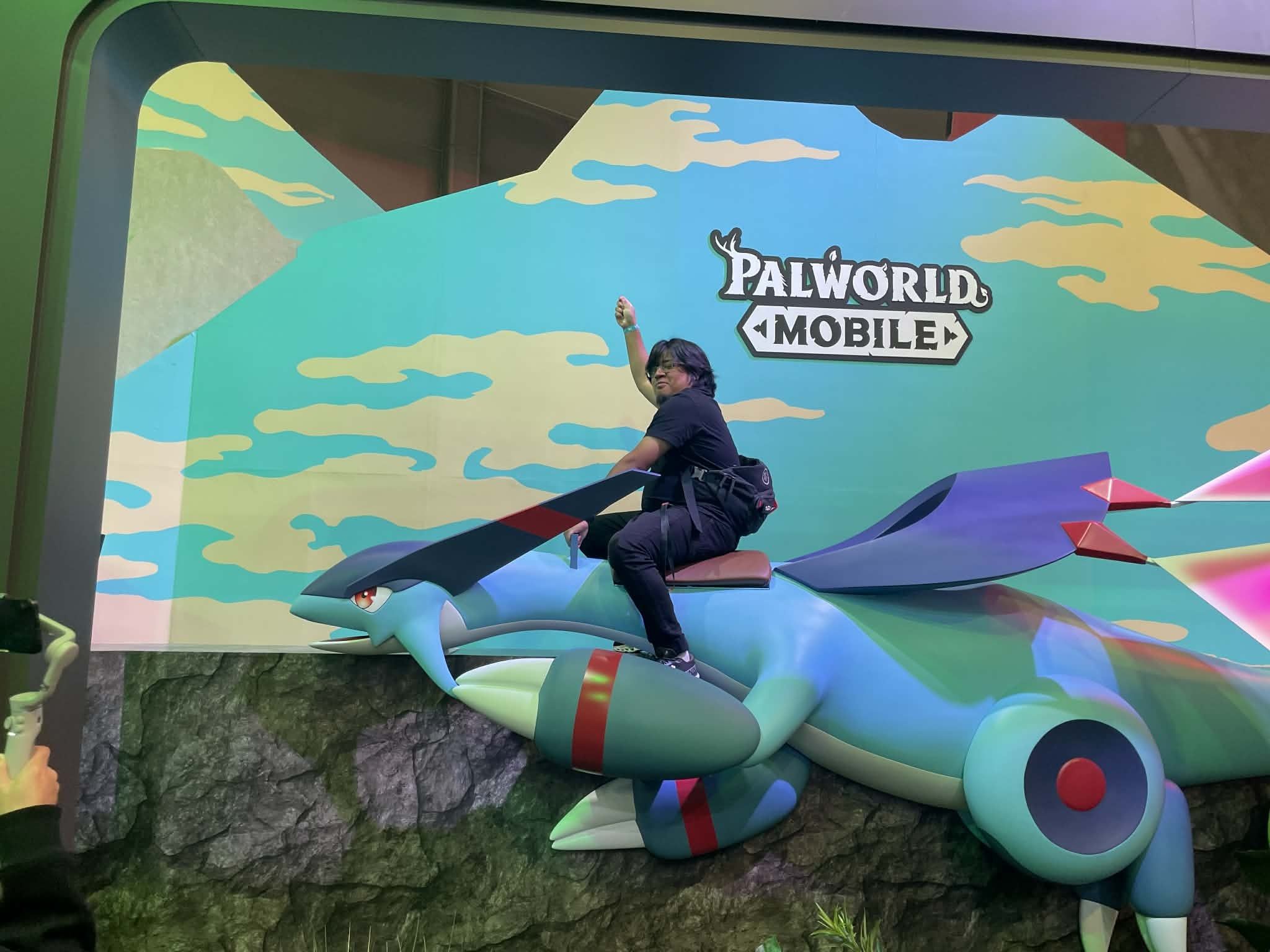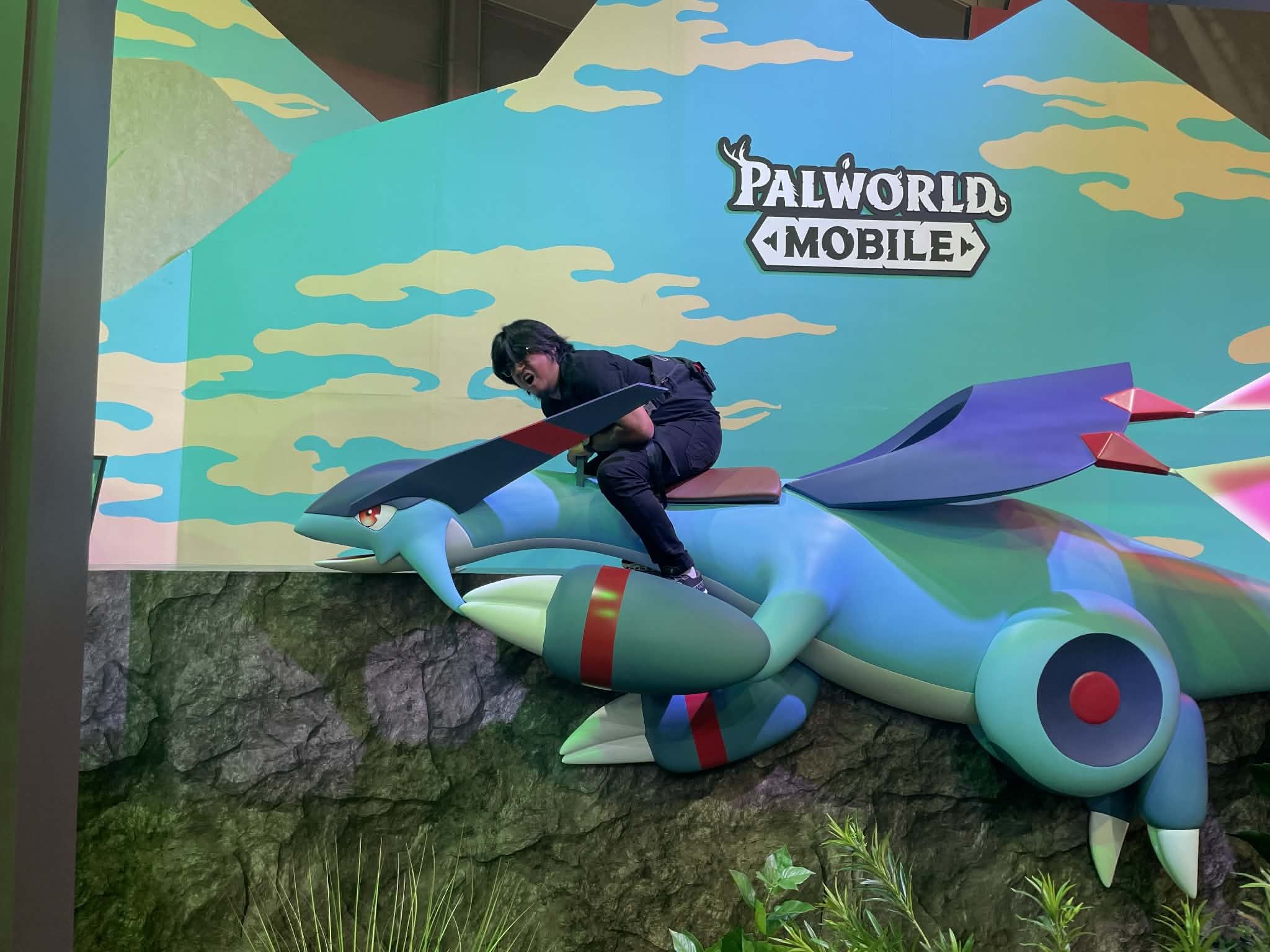 แถมท้ายด้วยพรี่โหนด หนึ่งในทีมงาน Online Station ของเราที่ลงทุนขึ้นไปแอ็กท่าถ่ายรูปร่วมกับ Pal ที่เป็นพร็อพประจำบูธ ปลดปล่อยความเป็นนักล่าในตัวกันไปเลย