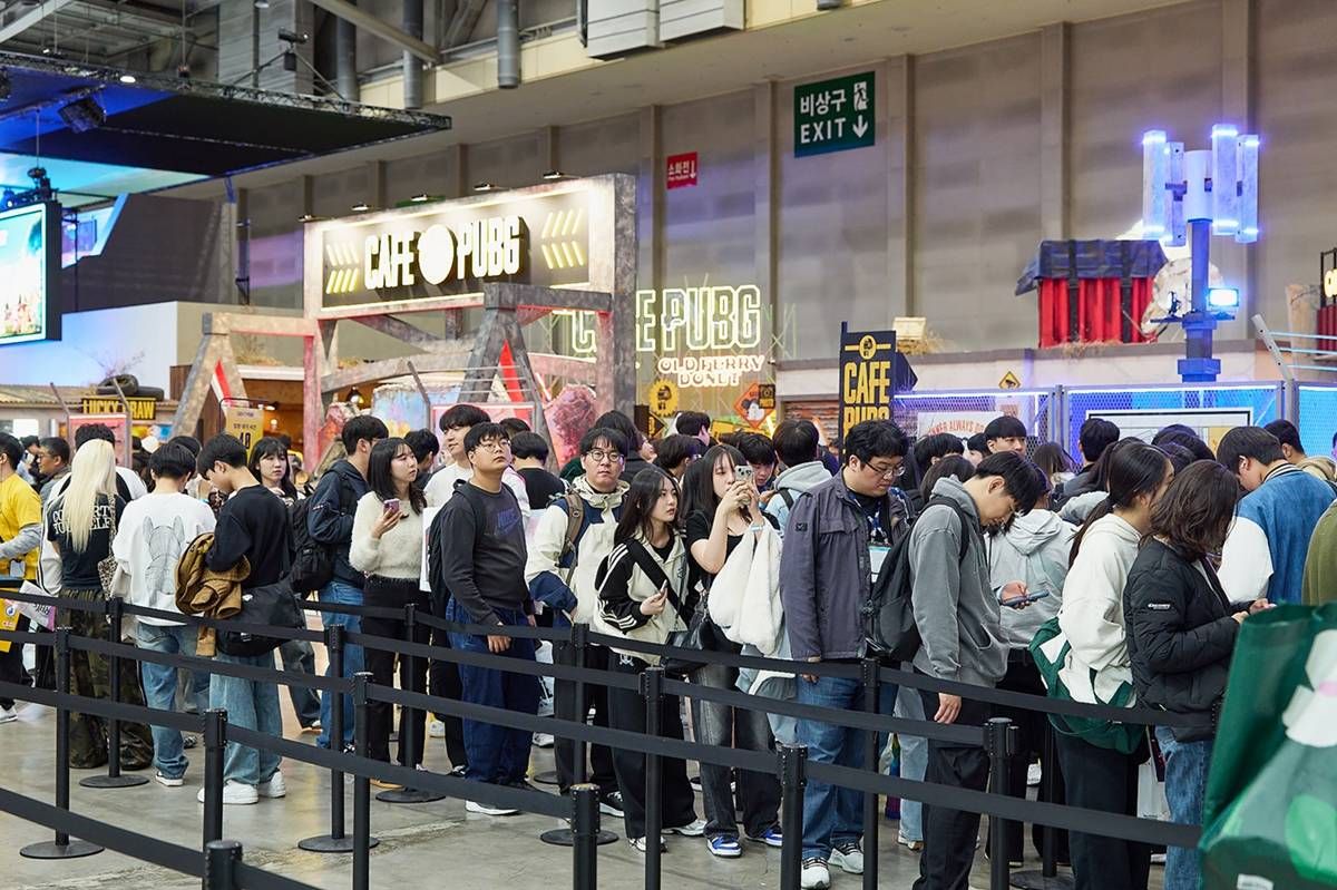 ในส่วนของ CAFÉ PUBG ซึ่งเป็นโซนพักผ่อนภายในงานภายใต้ธีมเกม PUBG: BATTLEGROUNDS อีกหนึ่ง IP จาก KRAFTON นั้นก็ได้รับความนิยมไม่แพ้กัน ด้วยความร่วมมือกับแบรนด์โดนัทระดับพรีเมียมอย่าง Old Ferry Donut ทาง CAFÉ PUBG จึงได้รังสรรค์เมนูสุดพิเศษเฉพาะภายในงาน พร้อมกิจกรรมมินิเกมและภารกิจต่าง ๆ ที่ได้รับแรงบันดาลใจจากจักรวาล PUBG ซึ่งแฟนๆต่างแสดงความประทับใจที่ได้รับของที่ระลึกสุดพิเศษ เช่น ร่ม หมอนอิง หมอนรองคอ และแก้วน้ำในธีม PUBG: BATTLEGROUNDS จากการเข้าร่วมทำภารกิจ “Digital Stamp Rally”