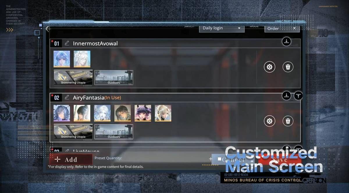 นอกจากนี้ยังมี ฟีเจอร์ปรับแต่งหน้าหลักของเกม ที่จะเปิดให้ผู้เล่นสามารถตกแต่งและตั้งค่าหน้าหลักได้ตามสไตล์ของตัวเองมากยิ่งขึ้น อีกทั้งยังมี การกลับมาของกิจกรรมยอดนิยมในอดีต ที่ได้รับคำชมจากผู้เล่น ซึ่งจะเปิดโอกาสให้แฟน ๆ ได้สัมผัสความสนุกเหล่านั้นอีกครั้งในเร็ว ๆ นี้