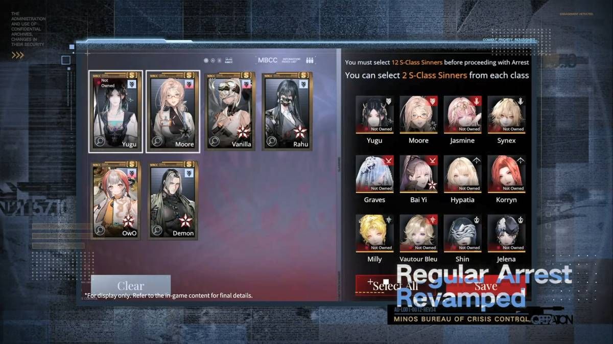 นอกจากนี้ ตัวเกมยังคงมุ่งมั่นในการพัฒนาและยกระดับประสบการณ์ของผู้เล่นอย่างต่อเนื่อง ผ่านการปรับปรุงและเพิ่มประสิทธิภาพในหลายด้าน เวอร์ชันใหม่นี้จะ ยกเลิกระบบ Compliance Requirements ที่เคยยุ่งยากออกไป ปรับปรุง Permanent Pool เพื่อให้ประสบการณ์การกาชาดีขึ้น และเพิ่มฟีเจอร์ใหม่อย่าง Sinners’ Birthday Calendar ที่ให้ผู้เล่นได้รับ การ์ดอวยพรและข้อความพิเศษจากตัวละครในวันเกิดของพวกเขา