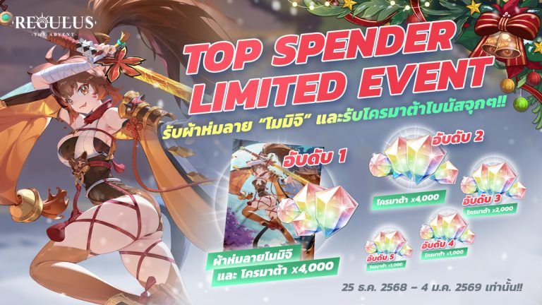 ยอดเติมเงินสะสมรวมสูงสุด 5 อันดับแรก รับของรางวัลสุดพิเศษ ผ้าห่มสุดลิมิเต็ดจาก Regulus พร้อม โบนัสโครมาต้า