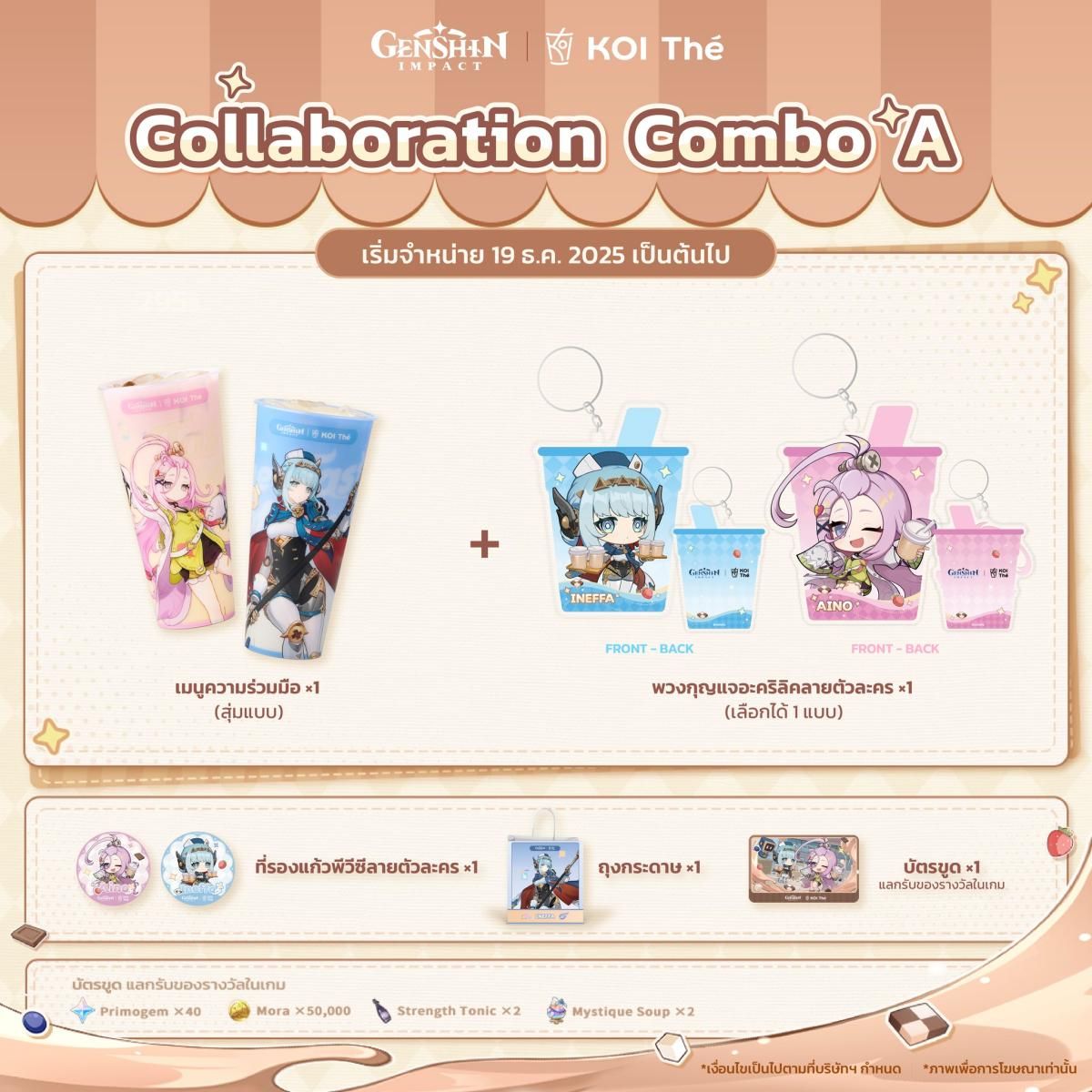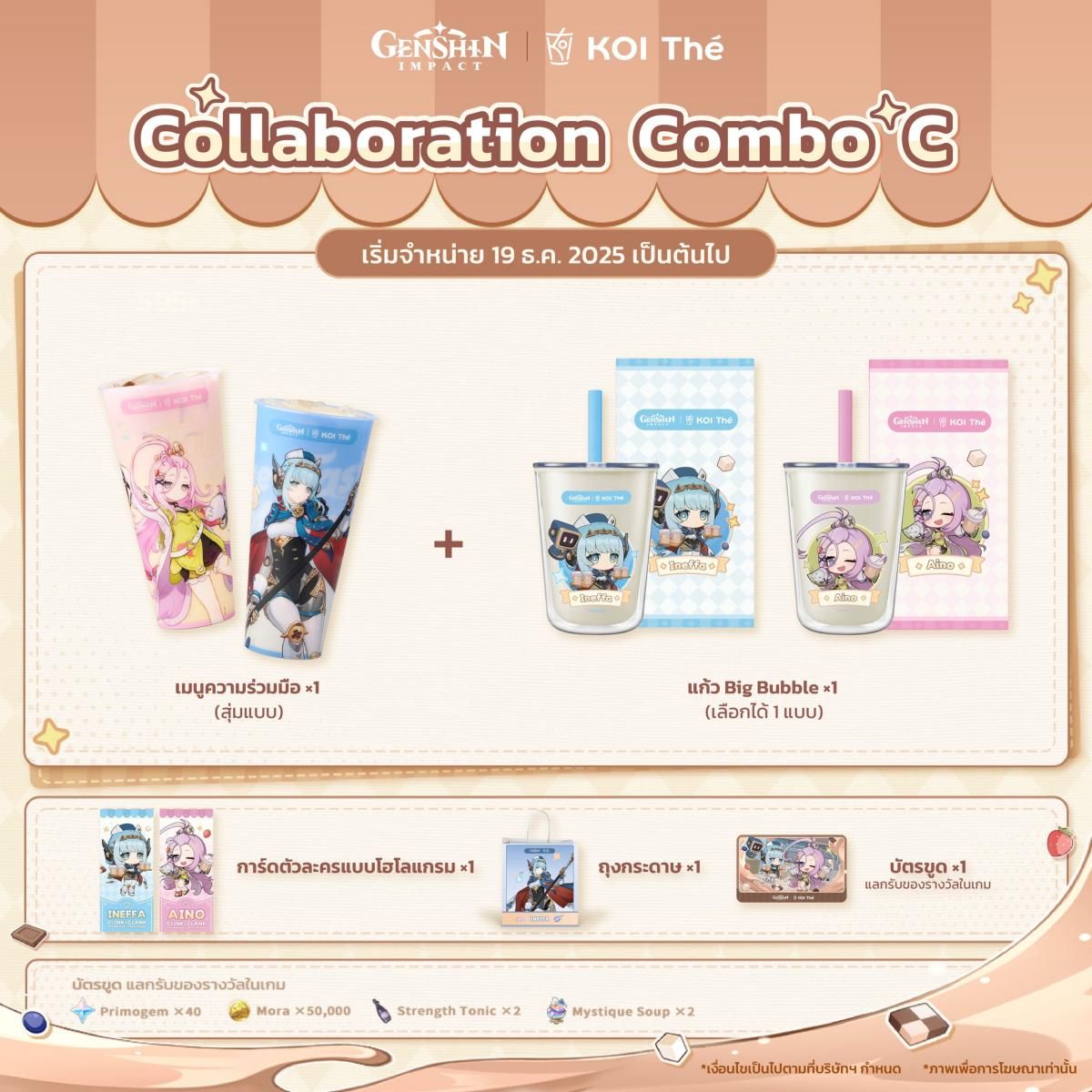 รายละเอียดเซตเครื่องดื่มกิจกรรมคอลแลปส์ Genshin Impact x KOI Thé "The Taste of Joy"