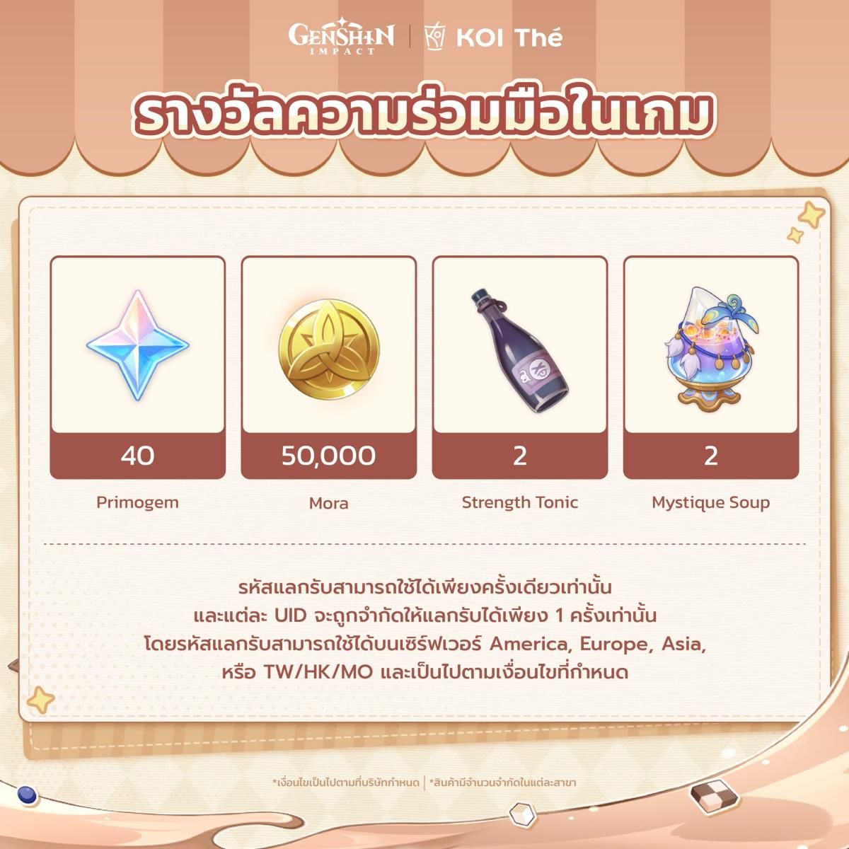 KOI Card ลายกิจกรรมคอลแลปส์ Genshin Impact x KOI Thé "The Taste of Joy"