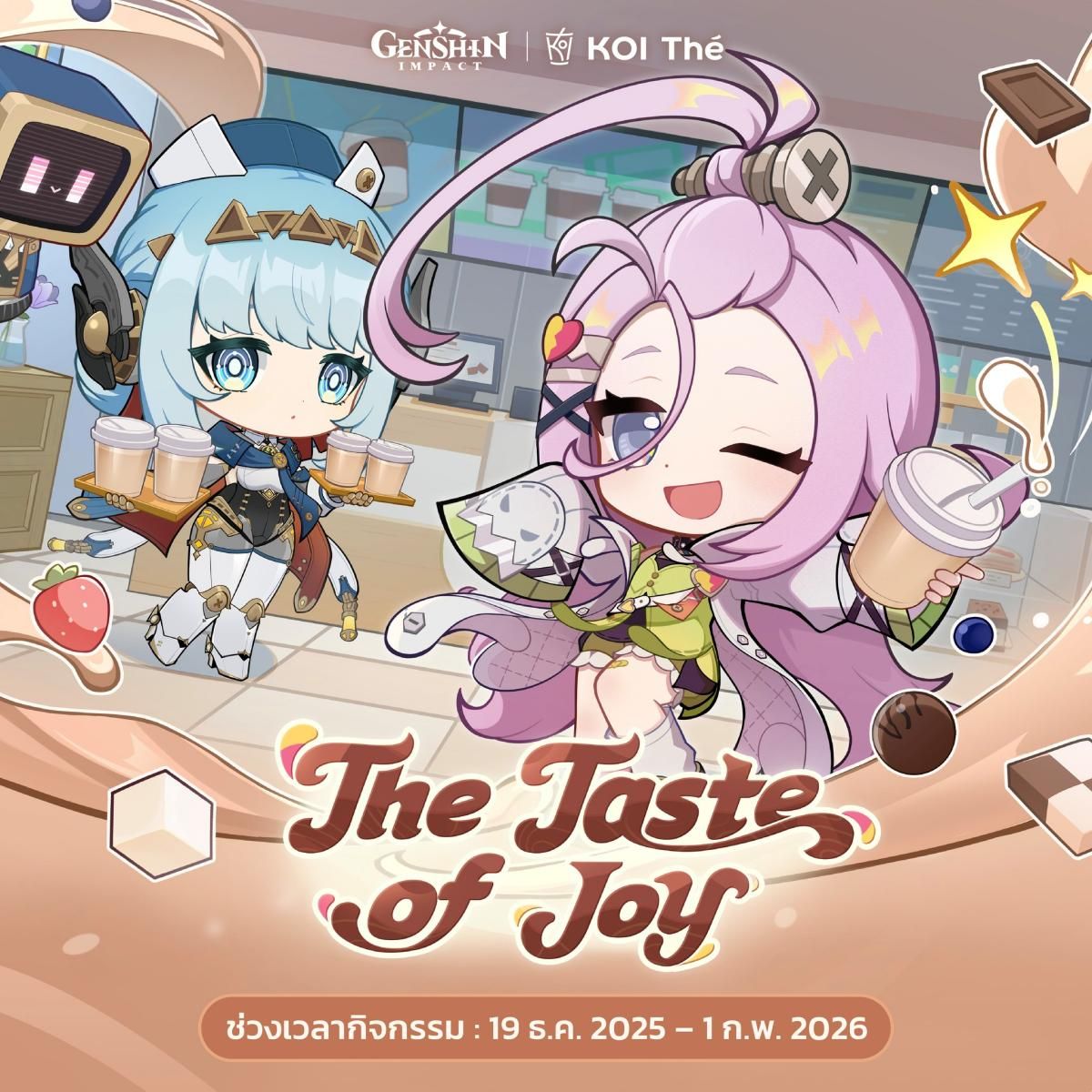 น่าจะเรียกได้ว่ามีกิจกรรมมาให้เหล่านักเดินทางได้ติดตามกันแบบไม่พักจริง ๆ สำหรับ Genshin Impact เกมแนว open-world adventure RPG ยอดฮิตจาก HoYoverse ซึ่งล่าสุดนั้นก็ได้มีการประกาศคอลแลปส์ร่วมกับทาง KOI Thé เตรียมมาเสิร์ฟเครื่องดื่มสุดอร่อยและความน่ารักสดใสให้กับเหล่านักเดินทางชาวไทยใน กิจกรรมความร่วมมือ Genshin Impact x KOI Thé "The Taste of Joy" ตั้งแต่วันที่ 19 ธันวาคม 2025 – 1 กุมภาพันธ์ 2026 นี้!