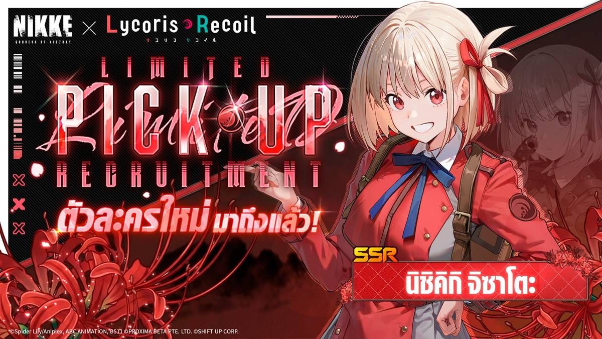 รายละเอียดเพิ่มเติมสำหรับอัปเดตคอลแลป Lycoris Recoil จะอัปเดตต่อเนื่องผ่านช่องทางทางการของ GODDESS OF VICTORY: NIKKE โปรดติดตามกันไว้นะ!