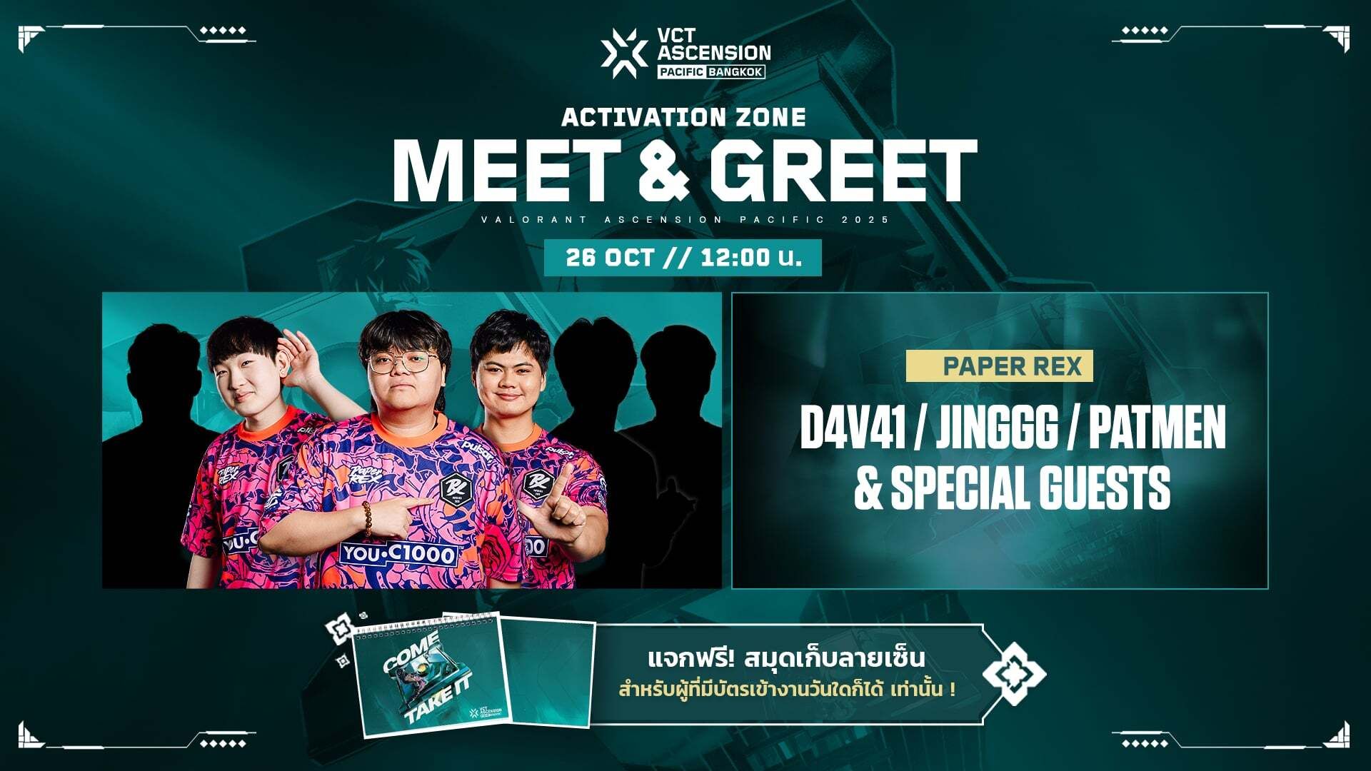 ● 12.00 – 14.00 น. พบกับ Paper Rex (PRX): d4v41, Jinggg, PatMen และแขกรับเชิญสุดเซอร์ไพรส์