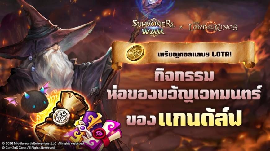 Summoners War: Sky Arena ประกาศอัปเดตคอลร่วมกับ 'The Lord of the Rings™' อย่างเป็นทางการ เมื่อวันที่ 29 มกราคมที่ผ่านมา การคอลแลบฯ ครั้งนี้ได้รับความสนใจอย่างท่วมท้นตั้งแต่ก่อนอัปเดต เนื่องจากเป็นการหลอมรวมเกมระดับโลกอย่าง Summoners War เข้ากับจักรวาลเหนือจินตนาการของ The Lord of the Rings ซึ่งถือเป็นผลงานชั้นครูของนวนิยายแฟนตาซี