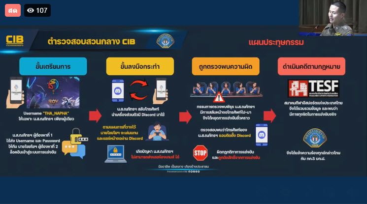 หลังจากที่เกิดประเด็นการแข่งขัน RoV ทีมหญิงในศึกซีเกมส์ ครั้งที่ 33 (SEA Games 2025) ทางสมาคมกีฬาอีสปอร์ตแห่งประเทศไทย (TESF) ได้ออกประกาศคำสั่งลงโทษขั้นเด็ดขาด ขับนักแข่งสาวชื่อดัง "Tokyogurl" ออกจากการแข่งขันทันที หลังถูกตรวจพบว่าทำผิดกฎร้ายแรง! พร้อมถอนทีม RoV หญิง ทีมชาติไทย ออกจากการแข่งขันซีเกมส์ ครั้งที่ 33 ซึ่งในตอนนี้ทาง ตํารวจสอบสวนกลาง (CIB) แถลงผล ตรวจค้นและดำเนินคดีกับผู้ต้องหาซึ่งทุจริตการแข่งขันกีฬาอีสปอร์ตซีเกมส์ (ROV) ซึ่งกำลังไลฟ์อยู่ในตอนนี้